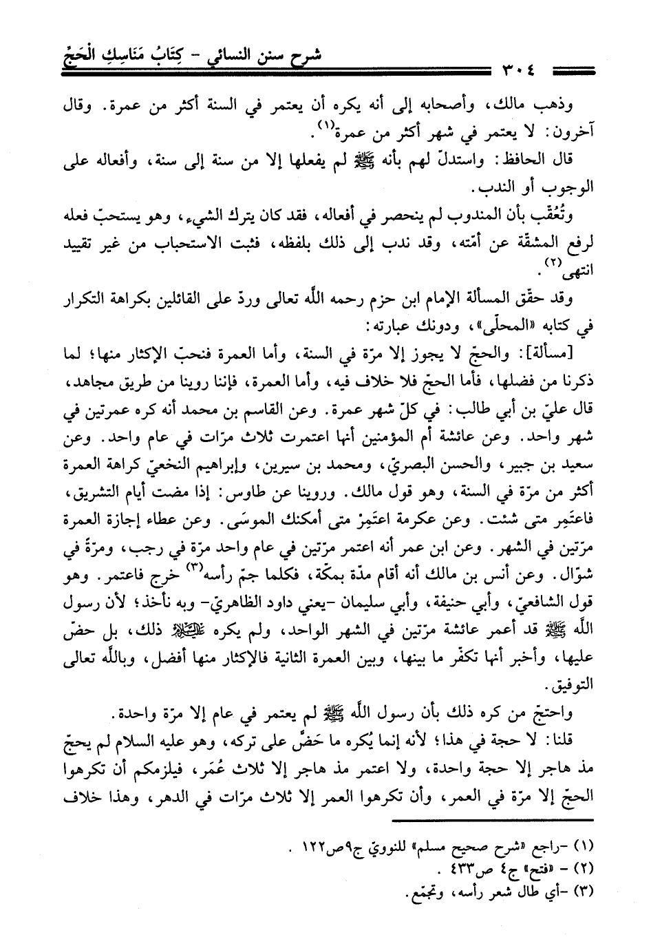 قلنا: لا حجة في هذا؛ لأنه إنما يُكره ما حَضَّ على تركه، وهو - عليه السلام - لم يحجّ مذ هاجر إلا حجة واحدة، ولا اعتمر مذ هاجر إلا ثلاث عُمَر، فيلزمكم أن تكرهوا الحجّ إلا مرّة في العمر، وأن تكرهوا العمر إلا ثلاث مرّات في الدهر، وهذا خلاف