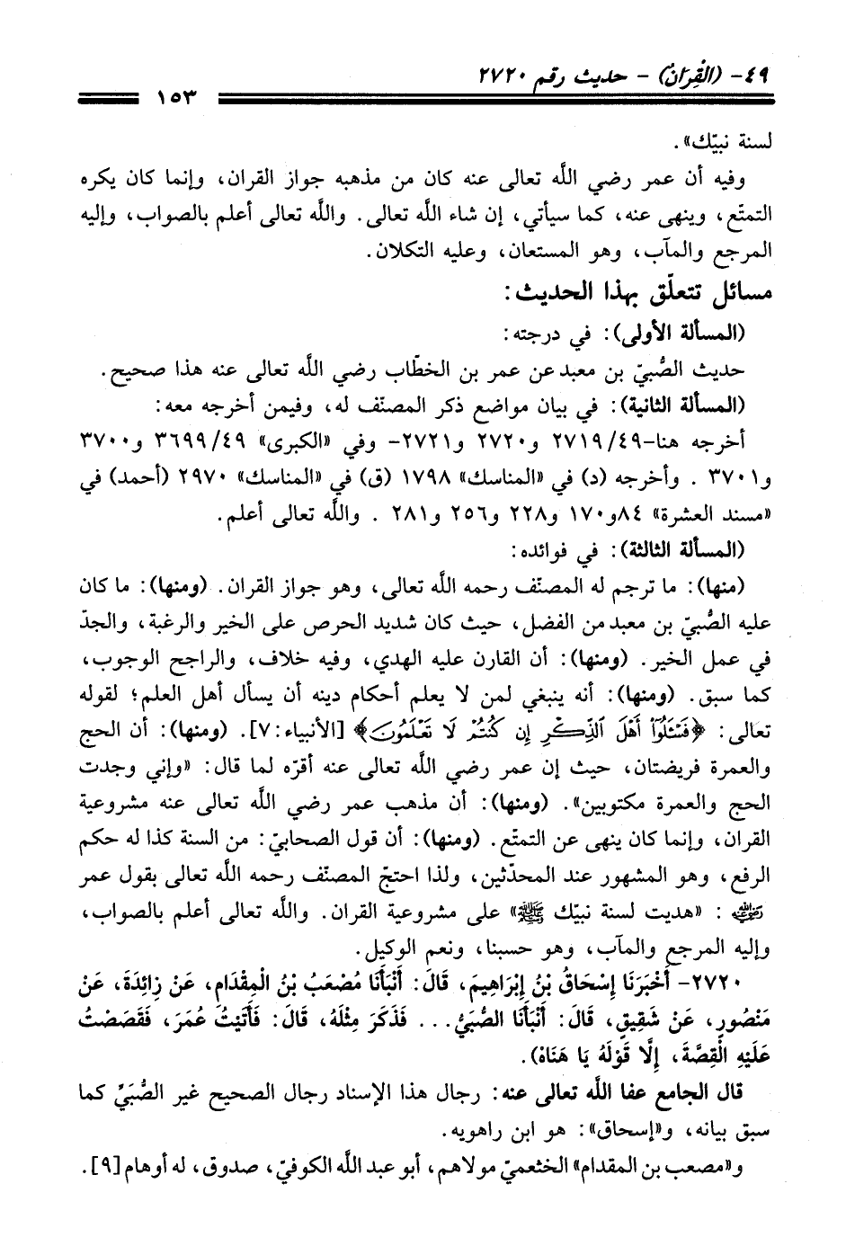 حديث الصُّبيّ بن معبد عن عمر بن الخطّاب - رضي اللَّه تعالى عنه - هذا صحيح.
