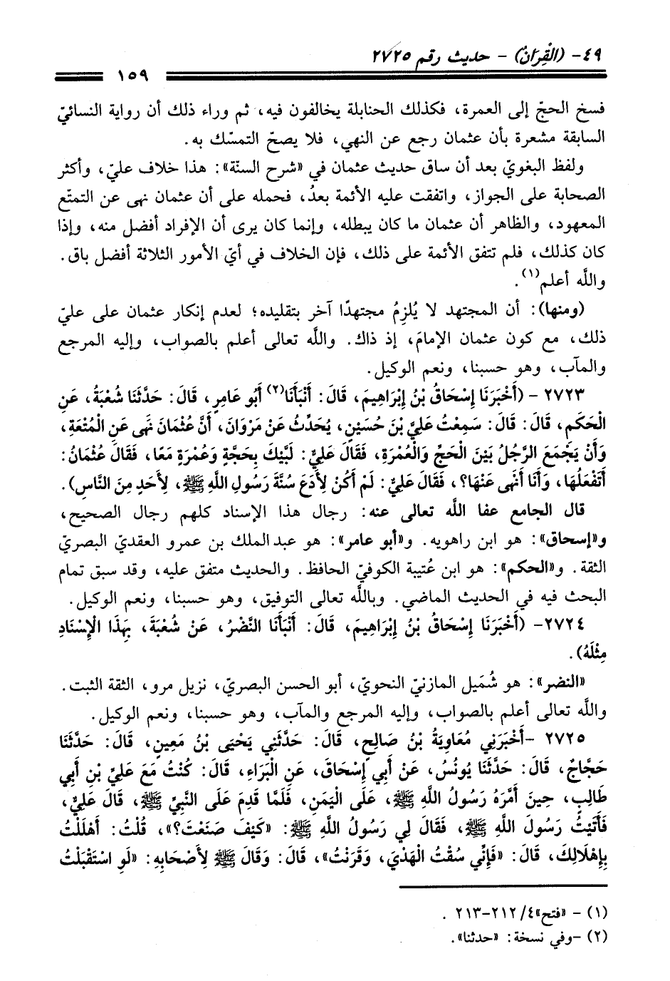 فسخ الحجّ إلى العمرة، فكذلك الحنابلة يخالفون فيه، ثم وراء ذلك أن رواية النسائيّ السابقة مشعرة بأن عثمان رجع عن النهي، فلا يصحّ التمسّك به.