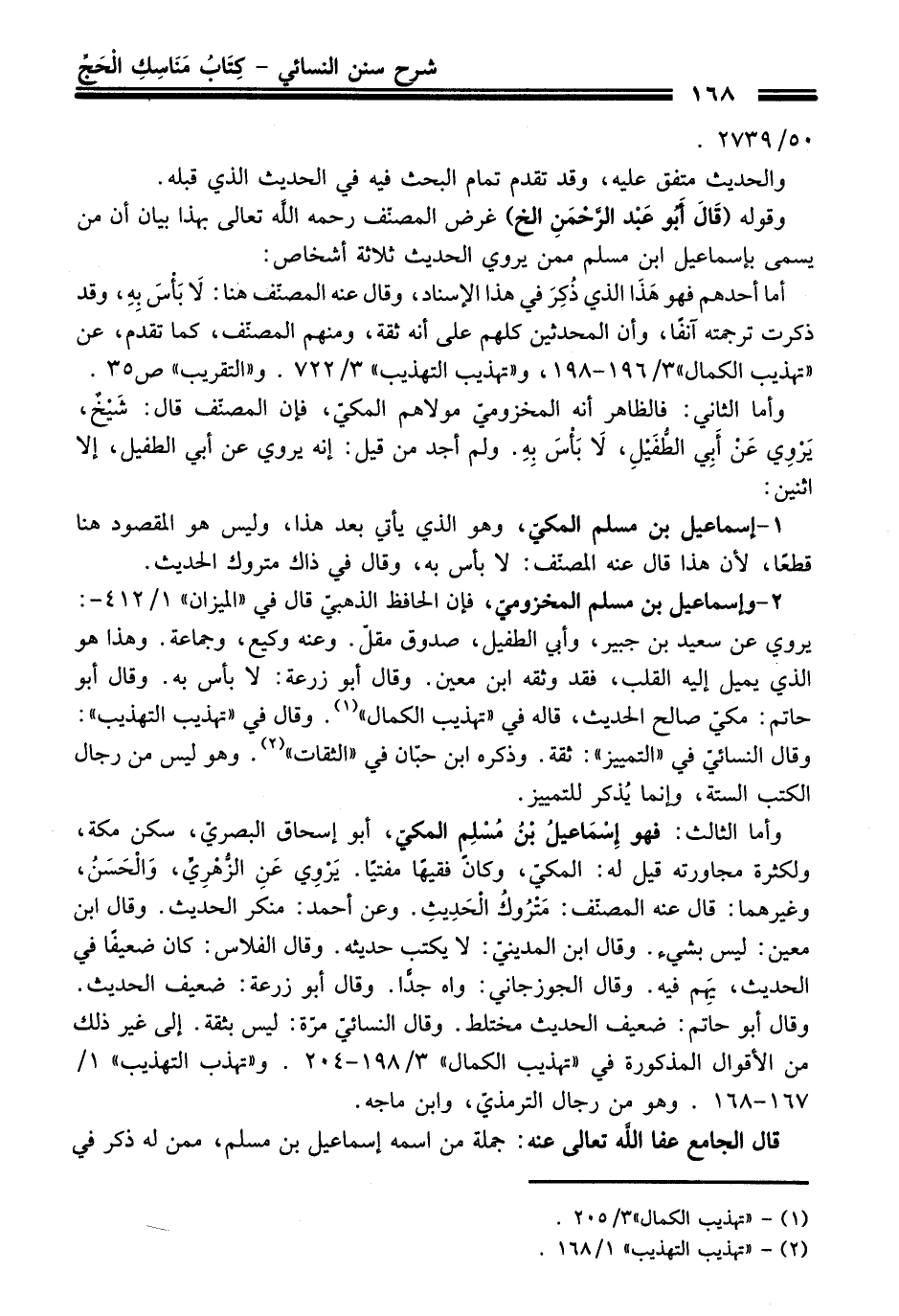 وقوله (قَالَ أبُو عَبْد الرَّحْمَنِ الخ) غرض المصنّف -رحمه اللَّه تعالى- بهذا بيان أن من يسمى بإسماعيل ابن مسلم ممن يروي الحديث ثلاثة أشخاص: