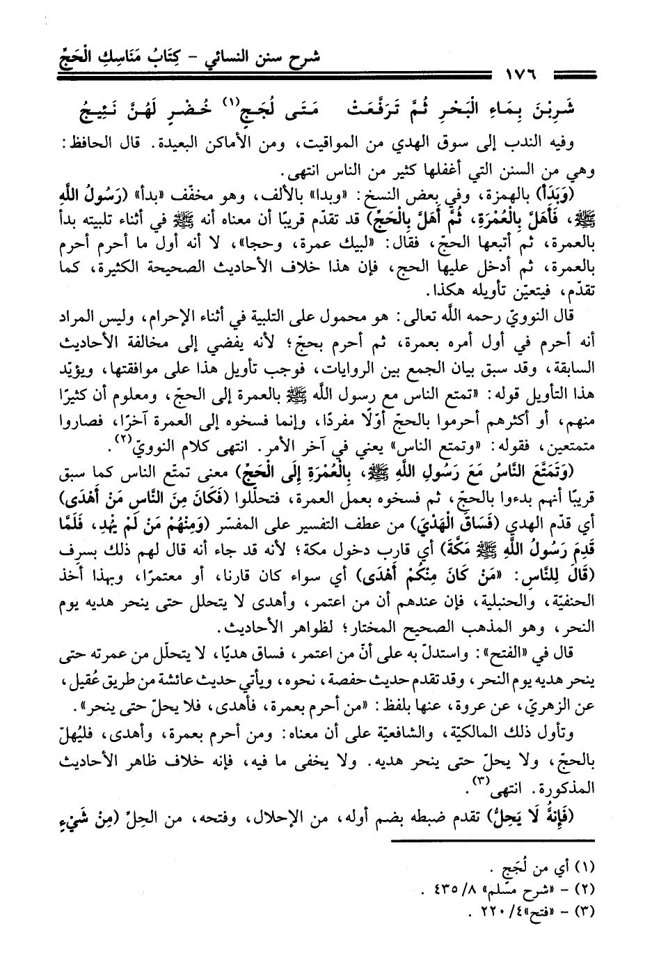 وتأول ذلك المالكيّة، والشافعيّة على أن معناه: ومن أحرم بعمرة، وأهدى، فليُهلّ بالحجّ، ولا يحلّ حتى ينحر هديه. ولا يخفى ما فيه، فإنه خلاف ظاهر الأحاديث المذكورة. انتهى (¬3).