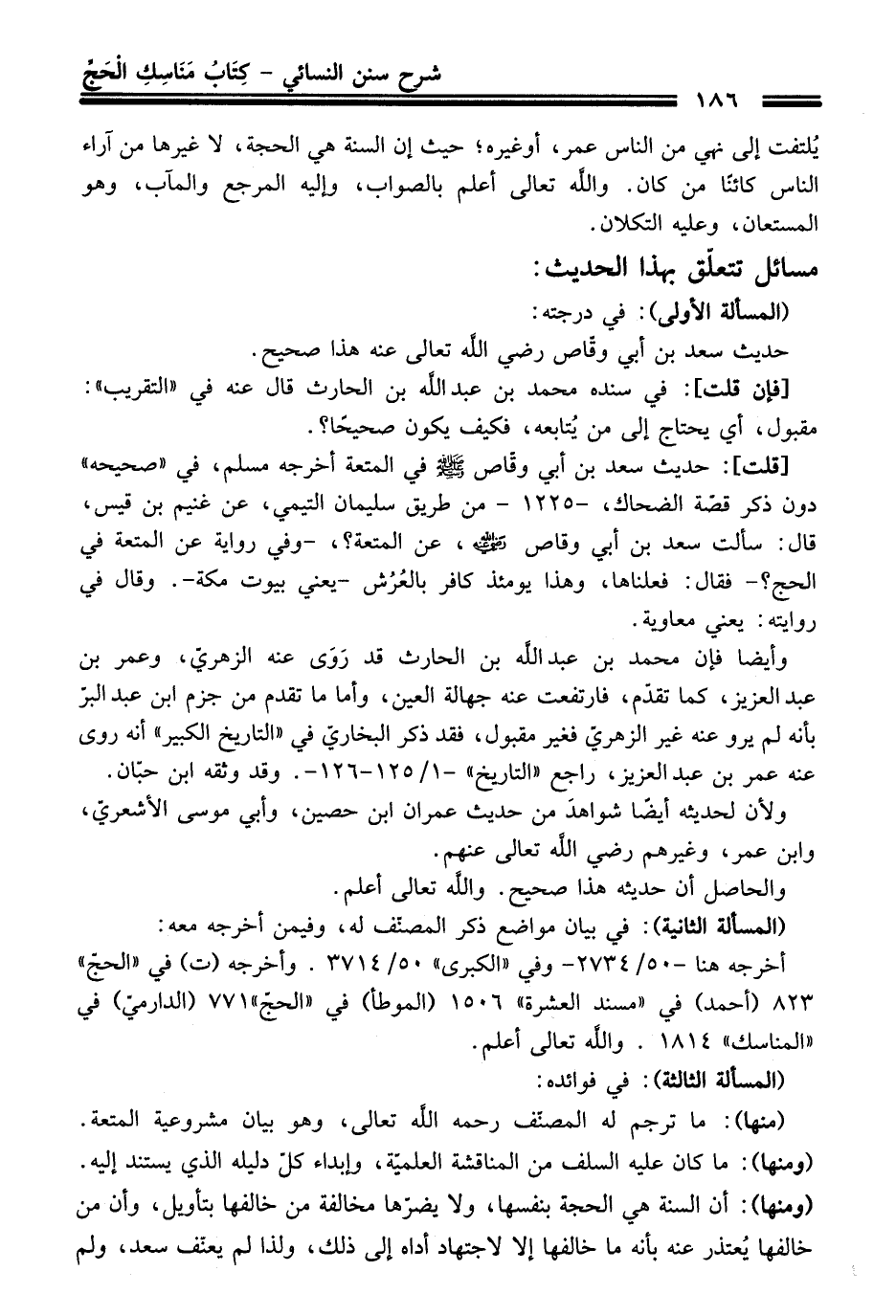 [قلت]: حديث سعد بن أبي وقّاص - رضي اللَّه عنه - في المتعة أخرجه مسلم، في "صحيحه" دون ذكر قصّة الضحاك، -1225 - من طريق سليمان التيمي، عن غنيم بن قيس، قال: سألت سعد بن أبي وقاص - رضي اللَّه عنه -، عن المتعة؟،- وفي رواية عن المتعة في الحجّ؟ - فقال: فعلناها، وهذا يومئذ كافر بالعُرُش -يعني بيوت مكة-. وقال في روايته: يعني معاوية.