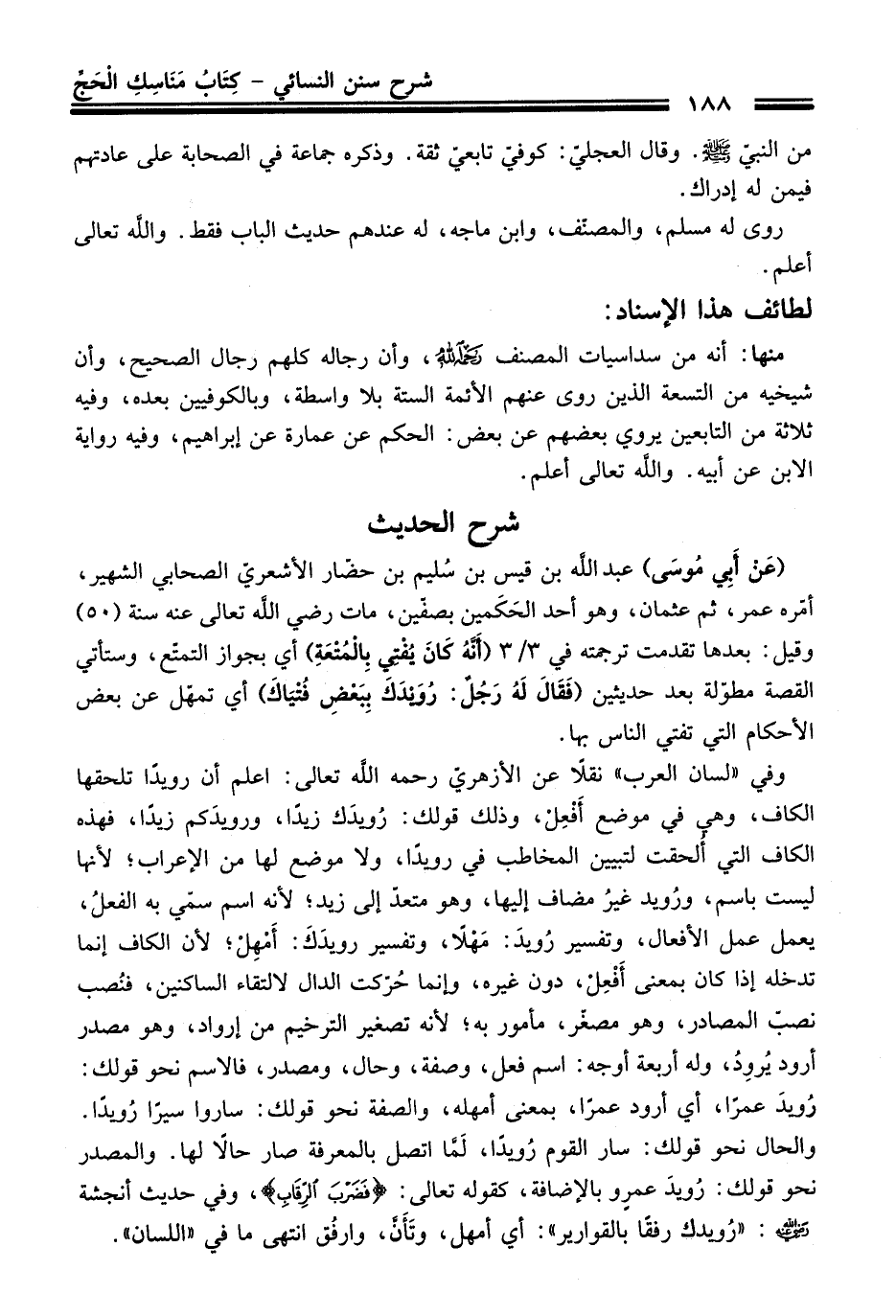 (عَنْ أَبِي مُوسَى) عبد اللَّه بن قيس بن سُليم بن حضّار الأشعريّ الصحابي الشهير، أمّره عمر، ثم عثمان، وهو أحد الحَكَمين بصفين، مات - رضي اللَّه تعالى عنه - سنة (50) وقيل: بعدها تقدمت ترجمته في 3/ 3 (أَنَّهُ كَانَ يُفْتِي بِالمتْعَةِ) أي بجواز التمتّع، وستأتي القصة مطوّلة بعد حديثين (فَقَالَ لَهُ رَجُلٌ: رُوَيدَكَ بِبَعْضِ فُتْيَاكَ) أي تمهّل عن بعض الأحكام التي تفتي الناس بها.