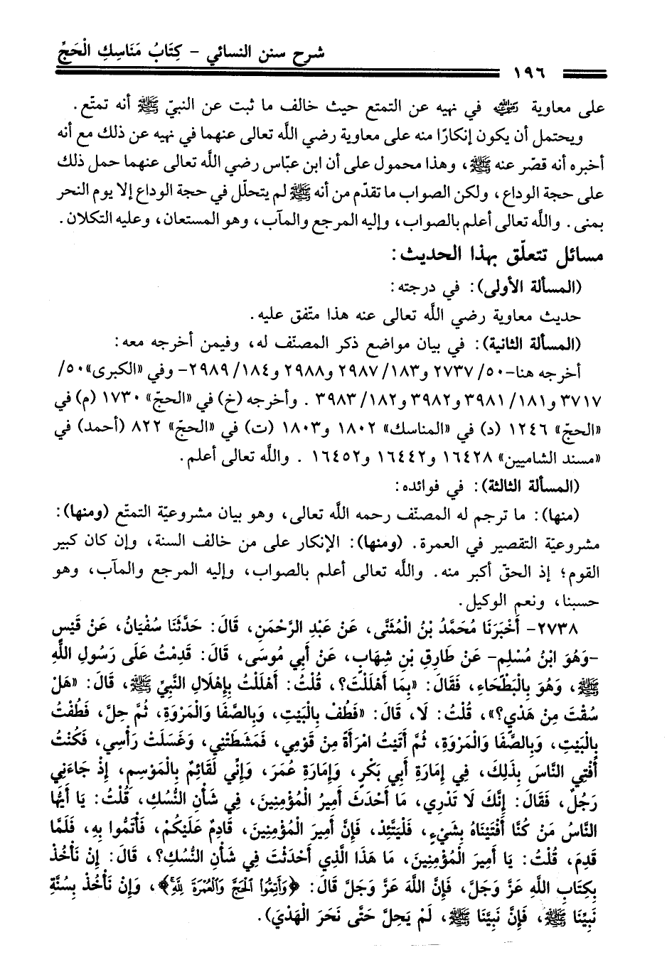 أخرجه هنا -50/ 2737 و 183/ 2987 و 2988 و 184/ 2989 - وفي "الكبرى" 50/ 3717 و 3981/ 181 و 3982 و 182/ 3983. وأخرجه (خ) في "الحجّ" 1730 (م) في "الحجّ" 1246 (د) في "المناسك" 1802 و 1803 (ت) في، "الحجّ" 822 (أحمد) في "مسند الشاميين" 16428 و 16442 و 16452. واللَّه تعالى أعلم.
