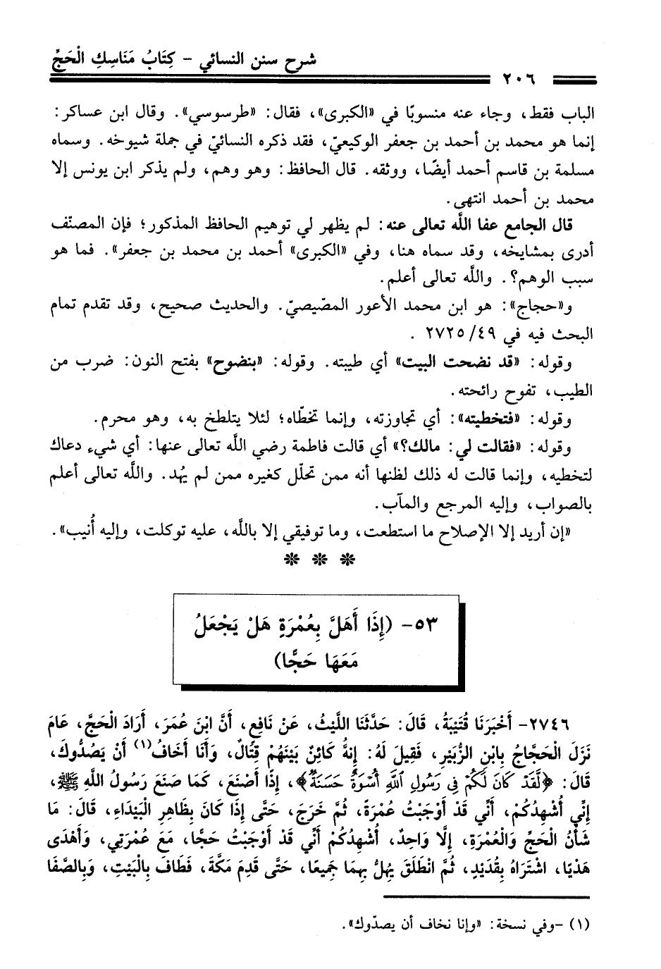 قال الجامع - عفا اللَّه تعالى عنه -: لم يظهر لي توهيم الحافظ المذكور؛ فإن المصنّف أدرى بمشايخه، وقد سماه هنا، وفي "الكبرى" أحمد بن محمد بن جعفر". فما هو سبب الوهم؟. واللَّه تعالى أعلم.