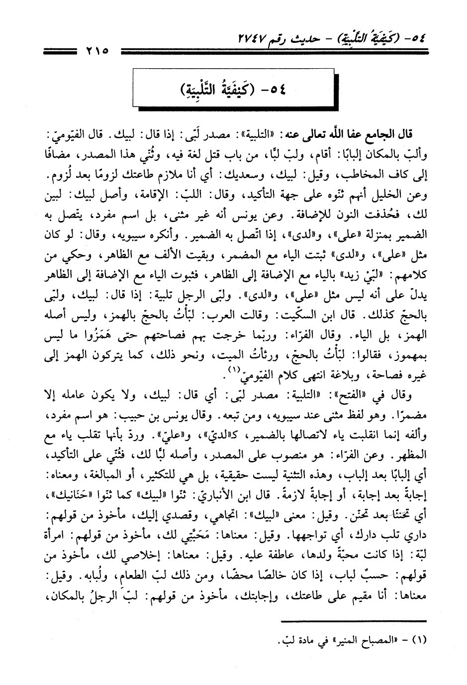 54 - (كَيْفَيَّةُ التَّلْبِيَةِ)