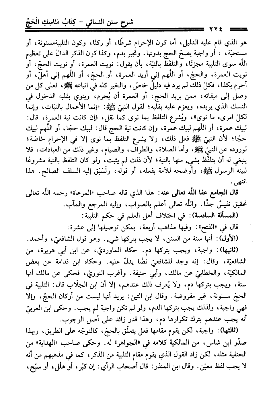 (المسألة السادسة): في اختلاف أهل العلم في حكم التلبية: