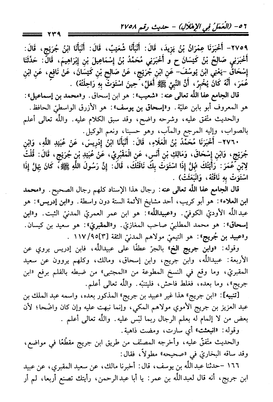 قال الجامع - عفا اللَّه تعالى عنه -: "شعيب": هو ابن إسحاق. و"محمد بن إسماعيل": هو المعروف أبو بابن عليّة. و"إسحاق بن يوسف": هو الأزرق الواسطيّ الحافظ.