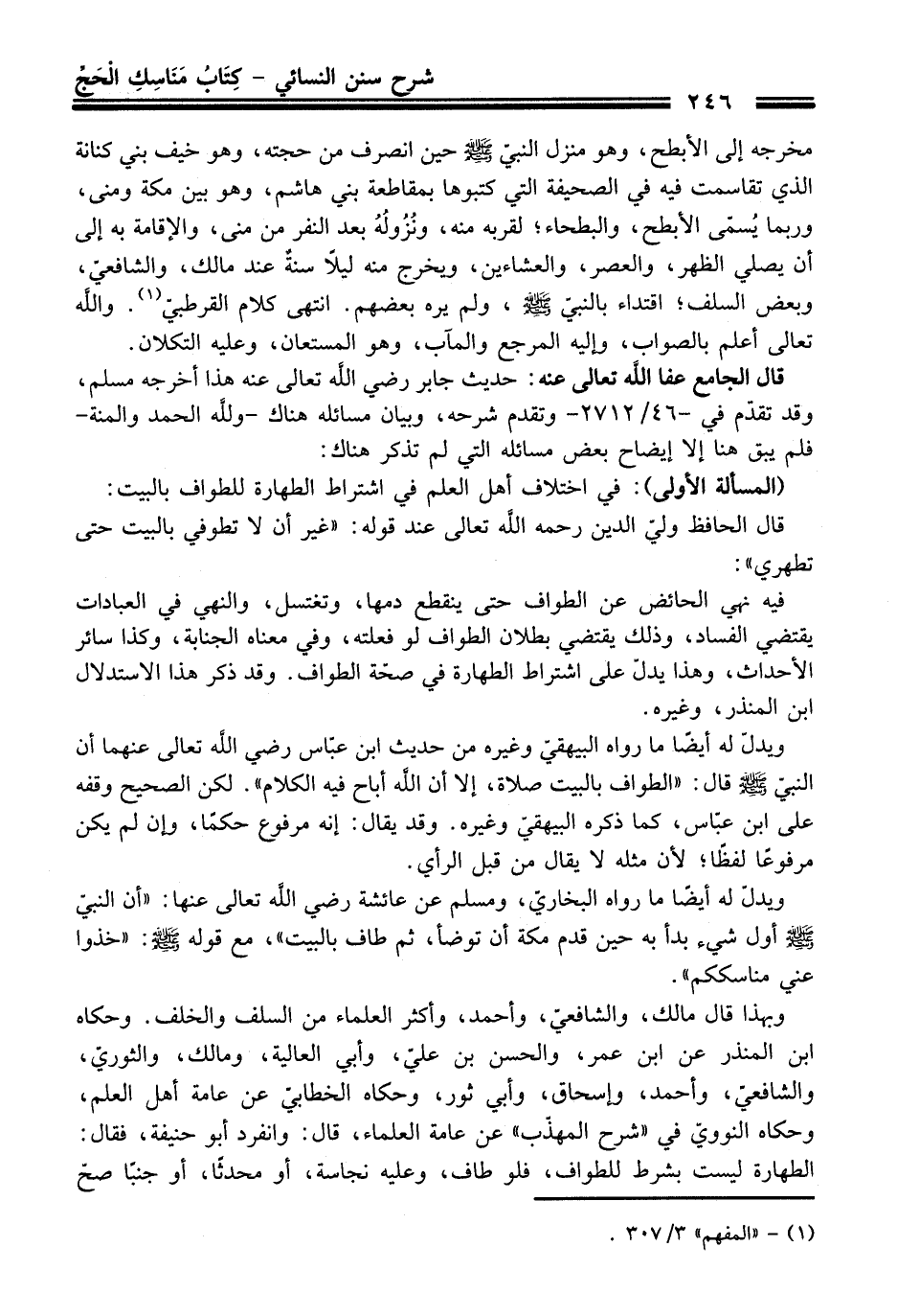 قال الحافظ وليّ الدين -رحمه اللَّه تعالى- عند قوله: "غير أن لا تطوفي بالبيت حتى تطهري":