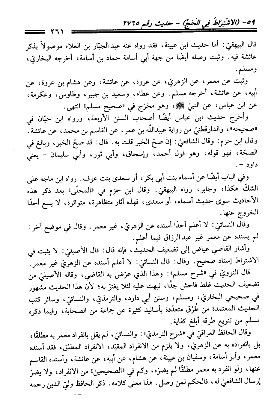وأشار القاضي عياض إلى تضعيف الحديث، فانه قال: قال الأصيليّ: لا يثبت في الاشتراط إسناد صحيح. وقال: قال النسائيّ: لا أعلم أسنده عن الزهريّ غير معمر.