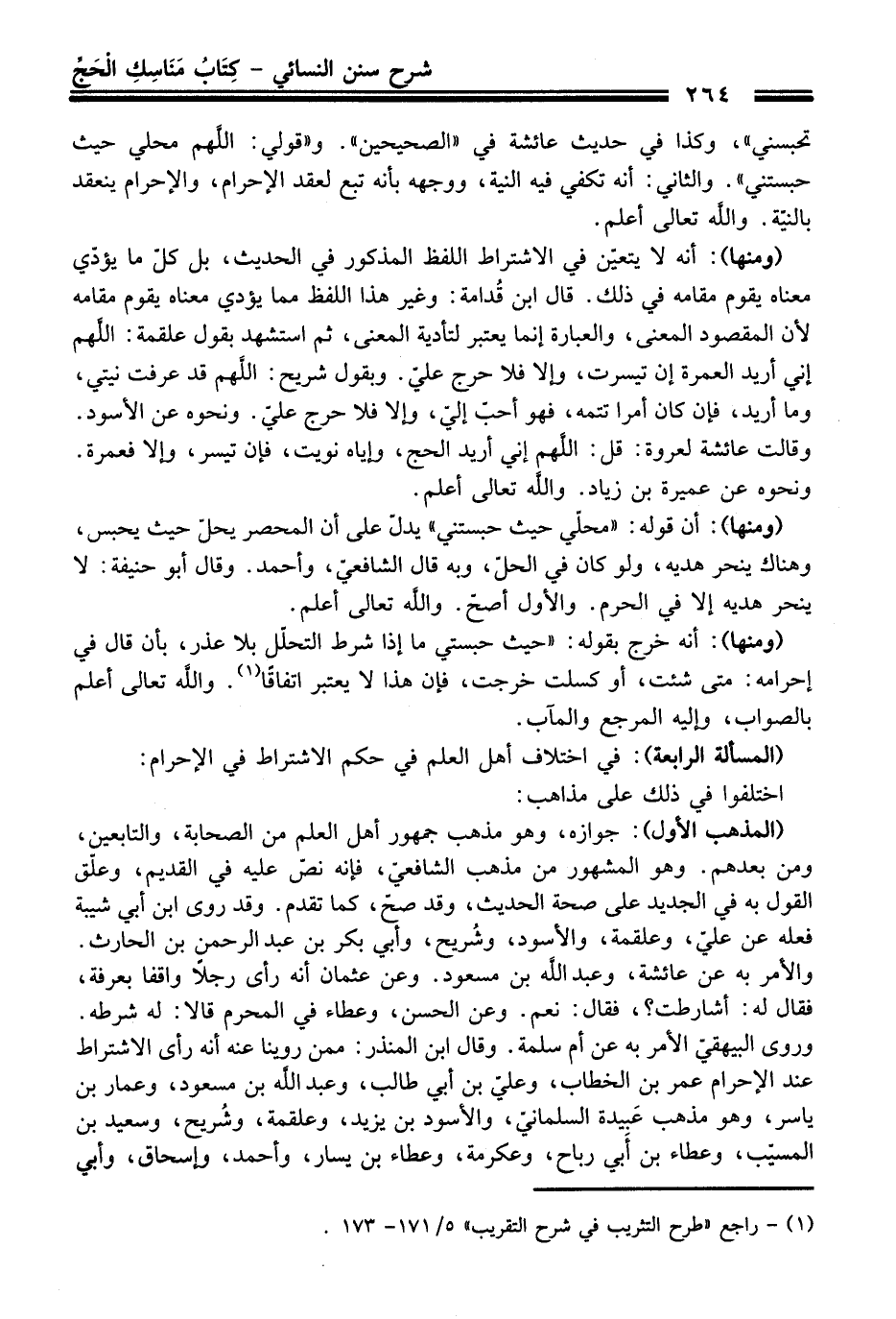 (المسألة الرابعة): في اختلاف أهل العلم في حكم الاشتراط في الإحرام: