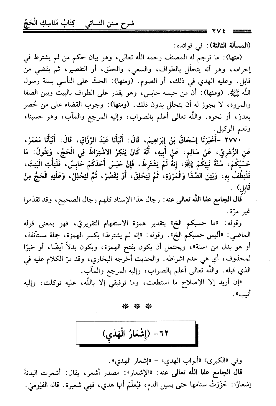 وفي "الكبرى" "أبواب الهدي" - "إشعار الهدي".
