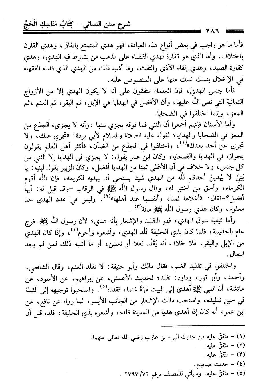 وأما كيفية سوق الهدي، فهو التقليد والإشعار بأنه هدي؛ لأن رسول اللَّه - صلى اللَّه عليه وسلم - خرج عام الحديبية، فلما كان بذي الحليفة قَلَّد الهدي، وأشعره وأحرم (¬4)، وإذا كان الهدي من الإبل والبقر، فلا خلاف أنه يُقَلَّد نعلا أو نعلين، أو ما أشبه ذلك لمن لم يجد النعال.