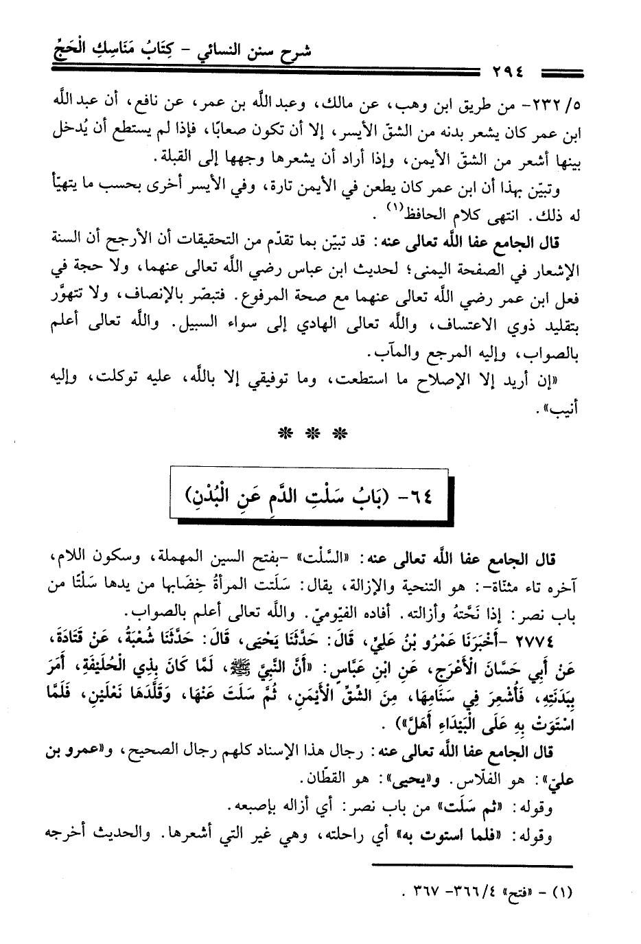 64 - (بَابُ سَلْتِ الدَّم عَنِ الْبُدْنِ)