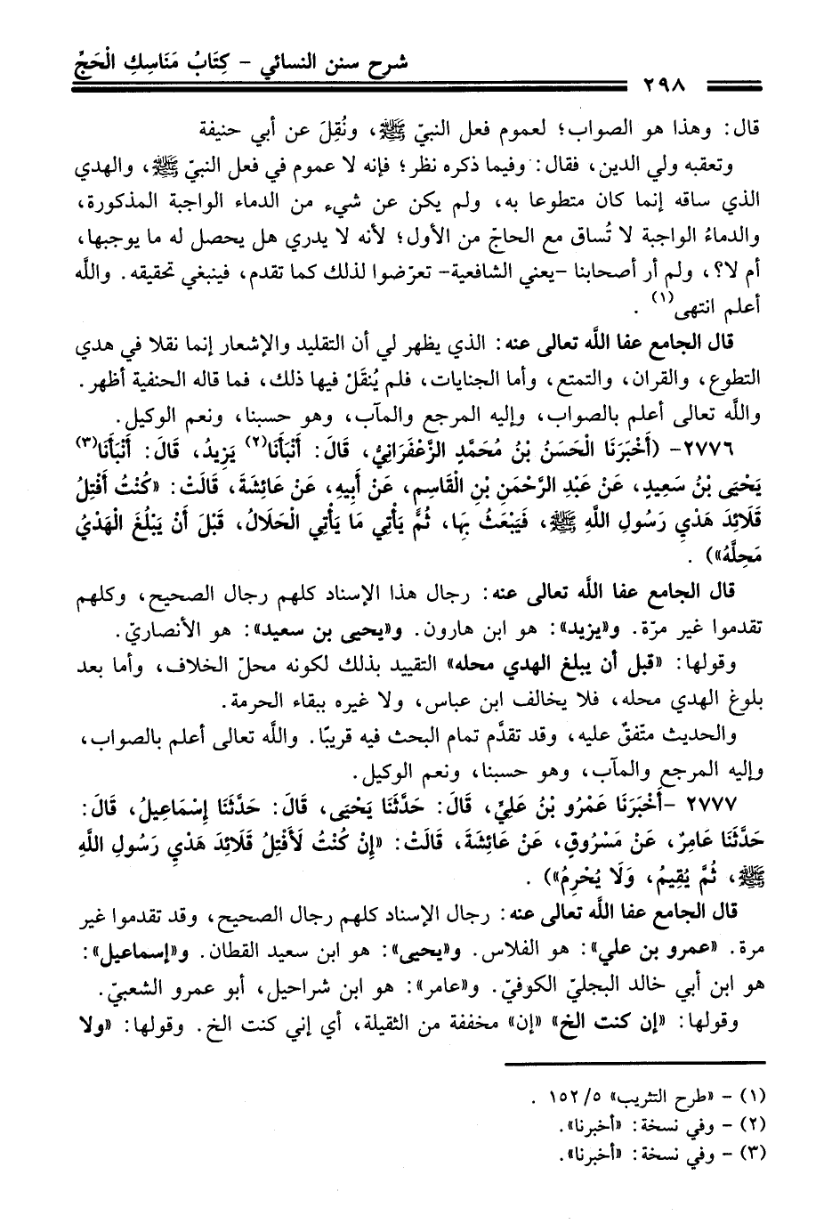 2776 - (أَخْبَرَنَا الْحَسَنُ بْنُ مُحَمَّدٍ الزَّعْفَرَانِيُّ, قَالَ: أَنْبَأَنَا (¬2) يَزِيدُ, قَالَ: أَنْبَأَنَا (¬3) يَحْيَى بْنُ سَعِيدٍ, عَنْ عَبْدِ الرَّحْمَنِ بْنِ الْقَاسِمِ, عَنْ أَبِيهِ,, عَنْ عَائِشَةَ,, قَالَتْ: "كُنْتُ أَفْتِلُ قَلاَئِدَ هَدْيِ رَسُولِ اللَّهِ - صلى اللَّه عليه وسلم - فَيَبْعَثُ بِهَا, ثُمَّ يَأْتِي مَا يَأْتِي الْحَلاَلُ, قَبْلَ أَنْ يَبْلُغَ الْهَدْيُ مَحِلَّهُ").