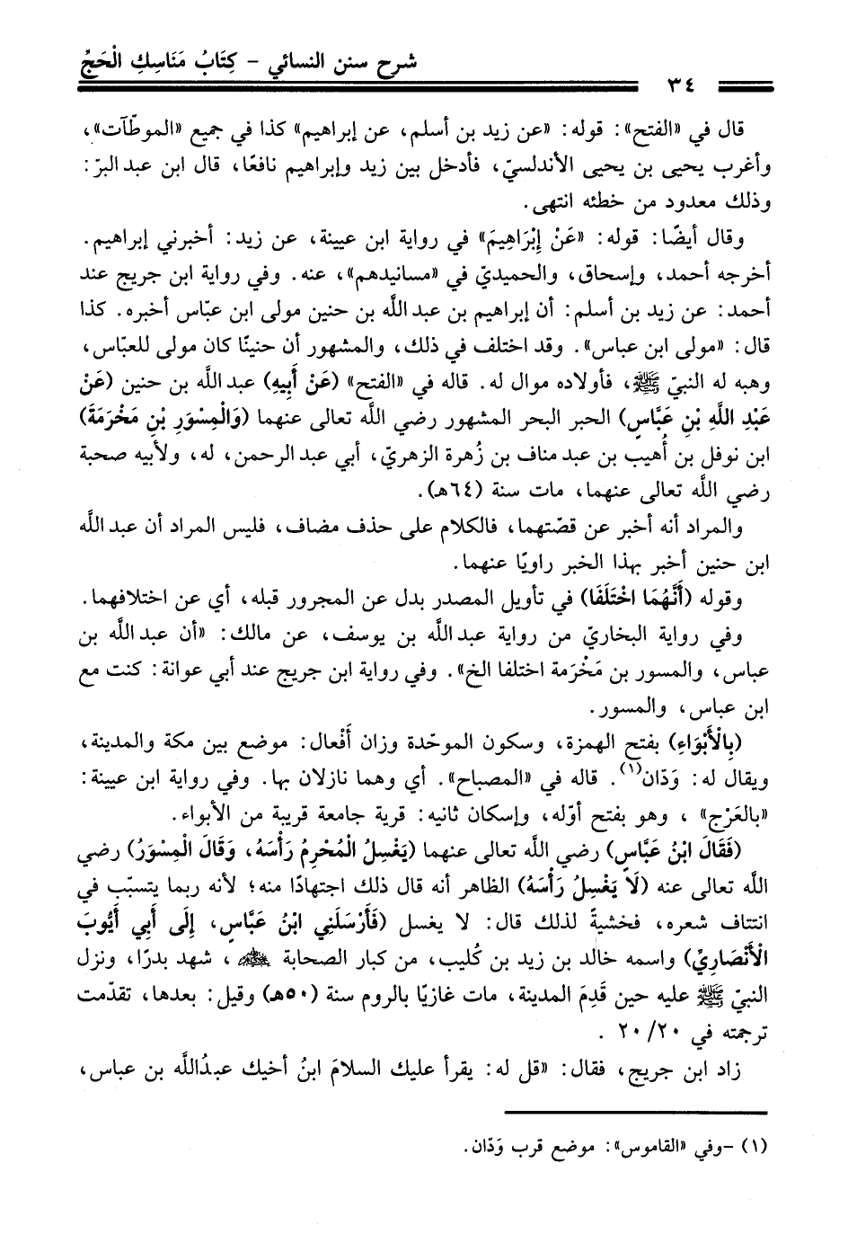 وقال أيضًا: قوله: "عَنْ إِبْرَاهِيمَ" في رواية ابن عيينة، عن زيد: أخبرني إبراهيم. أخرجه أحمد، وإسحاق، والحميديّ في "مسانيدهم"، عنه. وفي رواية ابن جريج عند أحمد: عن زيد بن أسلم: أن إبراهيم بن عبد اللَّه بن حنين مولى ابن عبّاس أخبره. كذا قال: "مولى ابن عباس". وقد اختلف في ذلك، والمشهور أن حنينًا كان مولى للعبّاس، وهبه له النبيّ - صلى اللَّه عليه وسلم -، فأولاده موال له. قاله في "الفتح" (عَنْ أَبِيهِ) عبد اللَّه بن حنين (عَنْ عَبْدِ اللَّه بْنِ عَبَّاسٍ) الحبر البحر المشهور - رضي اللَّه تعالى عنهما - (وَالْمِسْوَرِ بْنِ مَخْرَمَةً) ابن نوفل بن أُهيب بن عبد مناف بن زُهرة الزهريّ، أبي عبد الرحمن، له، ولأبيه صحبة - رضي اللَّه تعالى عنهما -، مات سنة (64 هـ).