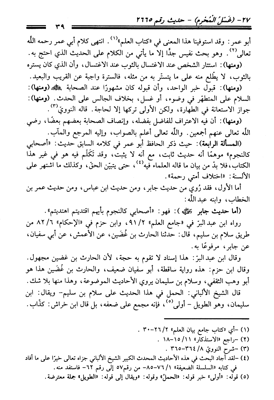 (أما حديث جابر - رضي اللَّه عنه -): فهو: "أصحابي كالنجوم بأيهم اقتديتم اهتديتم".