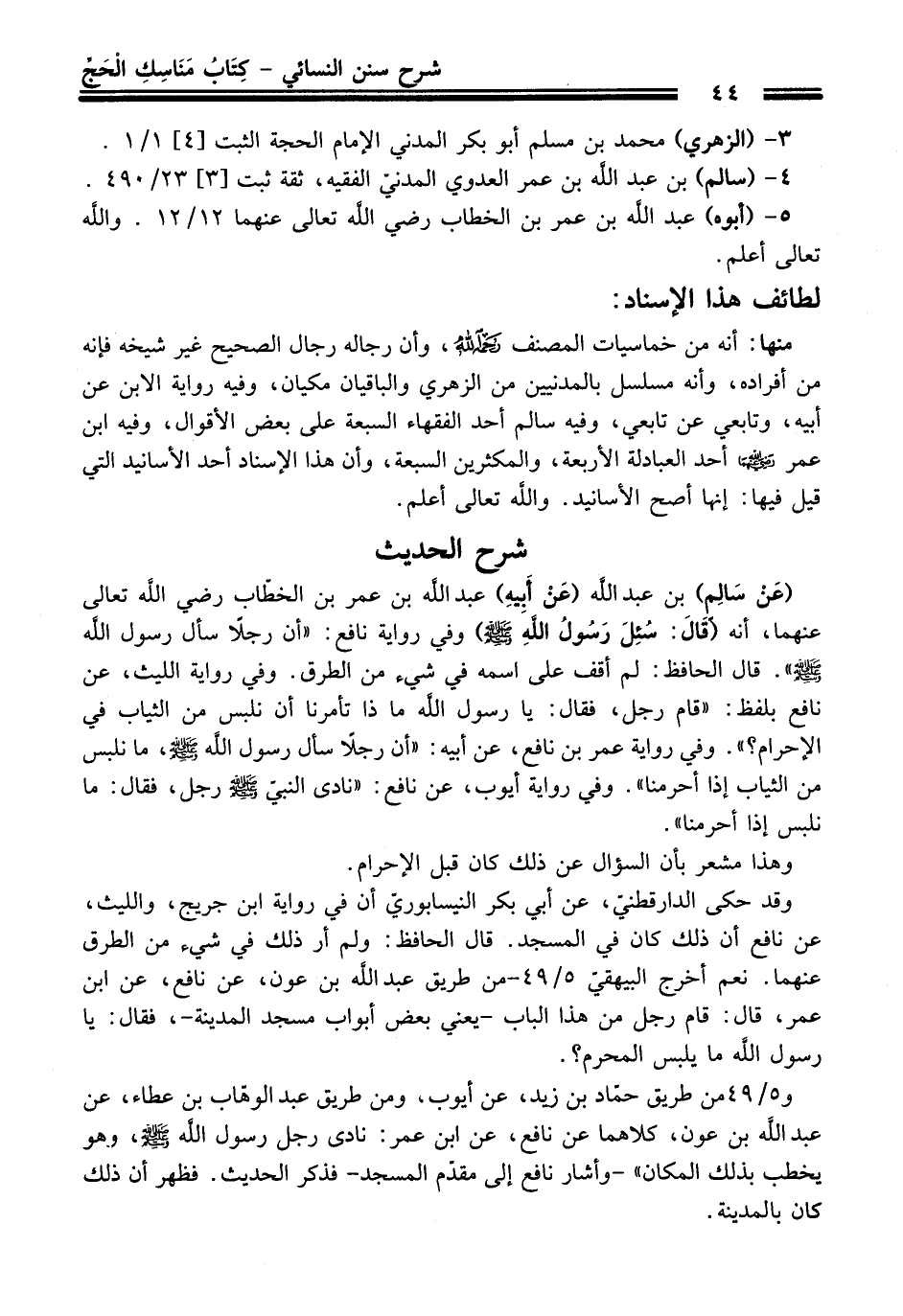 منها: أنه من خماسيات المصنف -رَحِمَهُ اللَّهُ-، وأن رجاله رجال الصحيح غير شيخه فإنه من أفراده، وأنه مسلسل بالمدنيين من الزهريّ والباقيان مكيان، وفيه رواية الابن عن أبيه، وتابعي عن تابعيّ، وفيه سالم أحد الفقهاء السبعة على بعض الأقوال، وفيه ابن عمر - رضي اللَّه عنهما - أحد العبادلة الأربعة، والمكثرين السبعة، وأن هذا الإسناد أحد الأسانيد التي قيل فيها: إنها أصح الأسانيد. واللَّه تعالى أعلم.