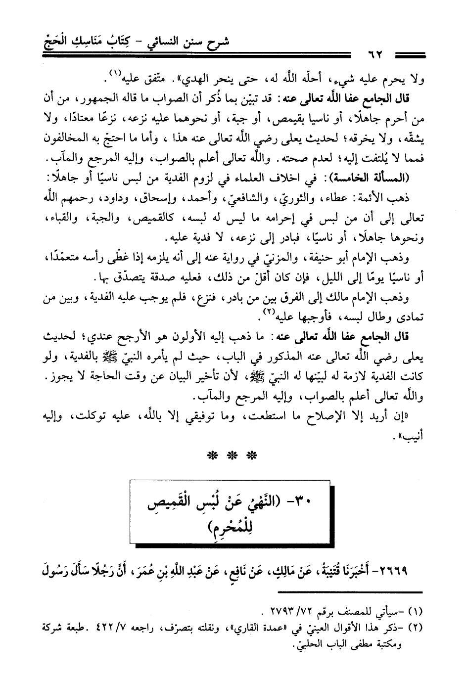 قال الجامع - عفا اللَّه تعالى عنه -: ما ذهب إليه الأولون هو الأرجح عندي؛ لحديث يعلى - رضي اللَّه تعالى عنه - المذكور في الباب، حيث لم يأمره النبيّ - صلى اللَّه عليه وسلم - بالفدية، ولو كانت الفدية لازمة له لبيّنها له النبيّ - صلى اللَّه عليه وسلم - , لأن تأخير البيان عن وقت الحاجة لا يجوز. واللَّه تعالى أعلم بالصواب، وإليه المرجع والمآب.