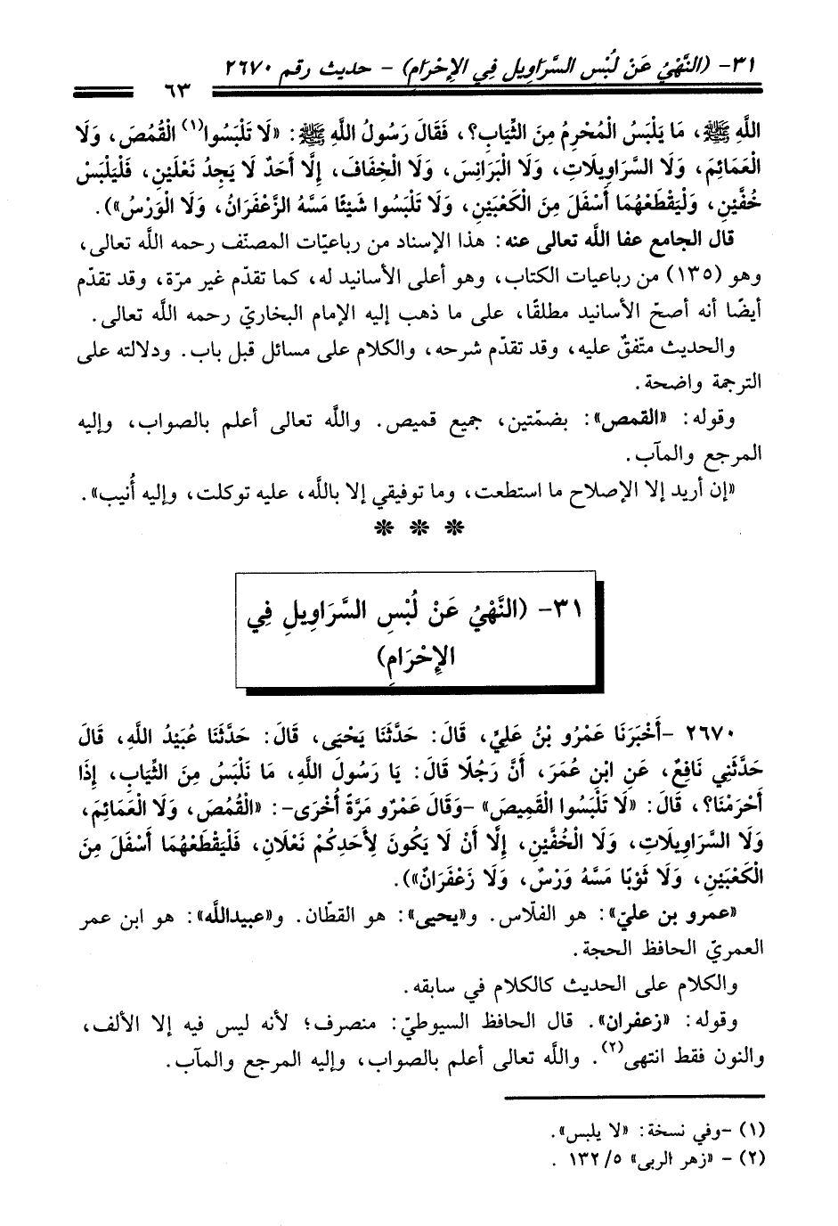 31 - (النَّهْيُ عَنْ لُبْسِ السَّرَاوِيلِ فِي الإِحْرَامِ)