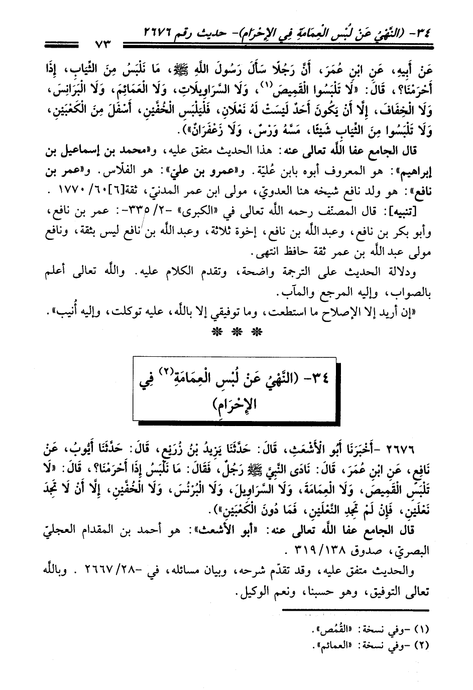 34 - (النَّهْيُ عَنْ لُبْسِ الْعِمَامَةِ (¬2) فِي الإِحْرَامِ) (*)
