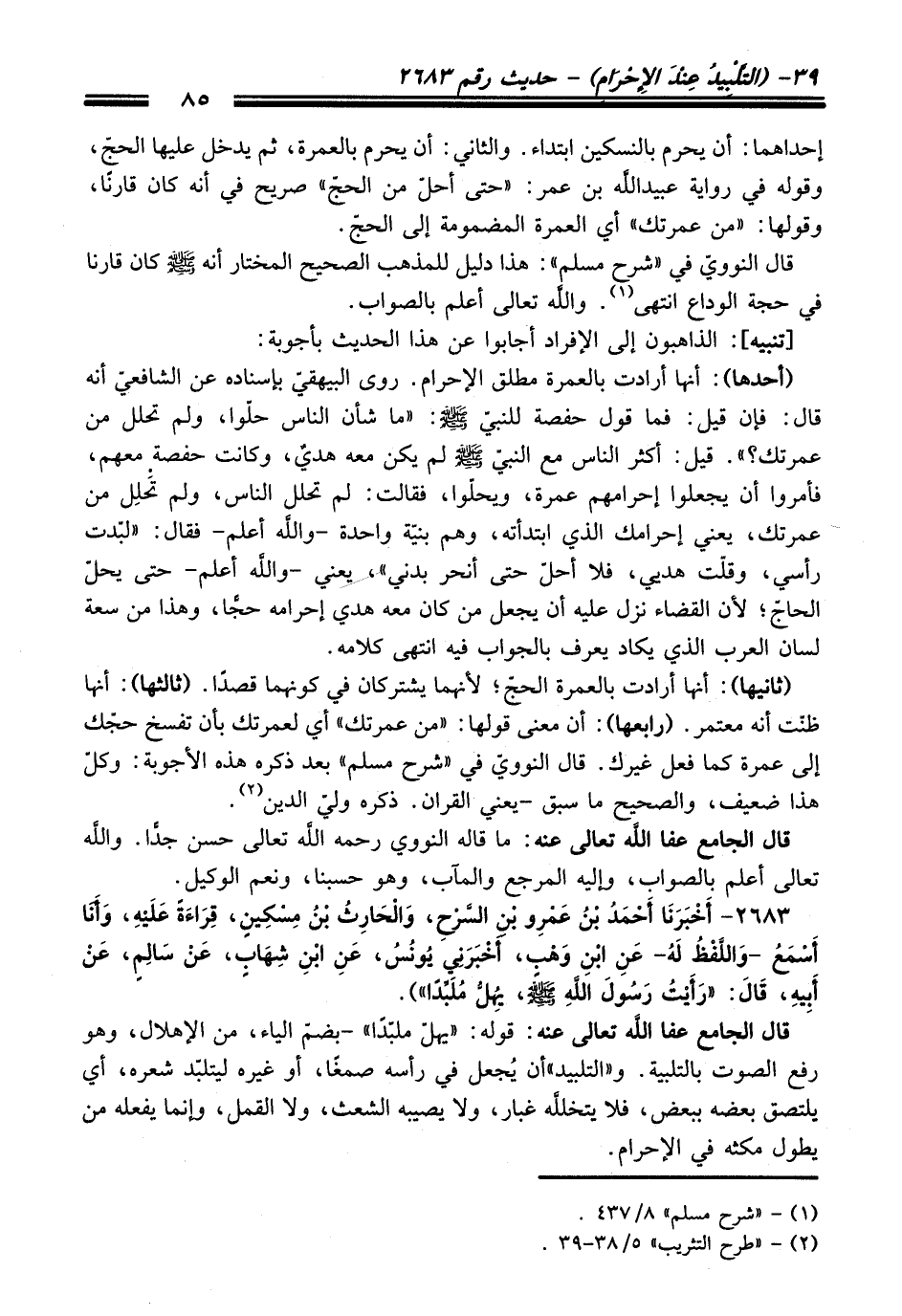 2683 - (أَخْبَرَنَا أَحْمَدُ بْنُ عَمْرِو بْنِ السَّرْحِ, وَالْحَارِثُ بْنُ مِسْكِينٍ, قِرَاءَةً عَلَيْهِ, وَأَنَا أَسْمَعُ -وَاللَّفْظُ لَهُ- عَنِ ابْنِ وَهْبٍ, أَخْبَرَنِي يُونُسُ, عَنِ ابْنِ شِهَابٍ, عَنْ سَالِمٍ, عَنْ أَبِيهِ, قَالَ: "رَأَيْتُ رَسُولَ اللَّهِ - صلى اللَّه عليه وسلم -, يُهِلُّ مُلَبِّدًا").