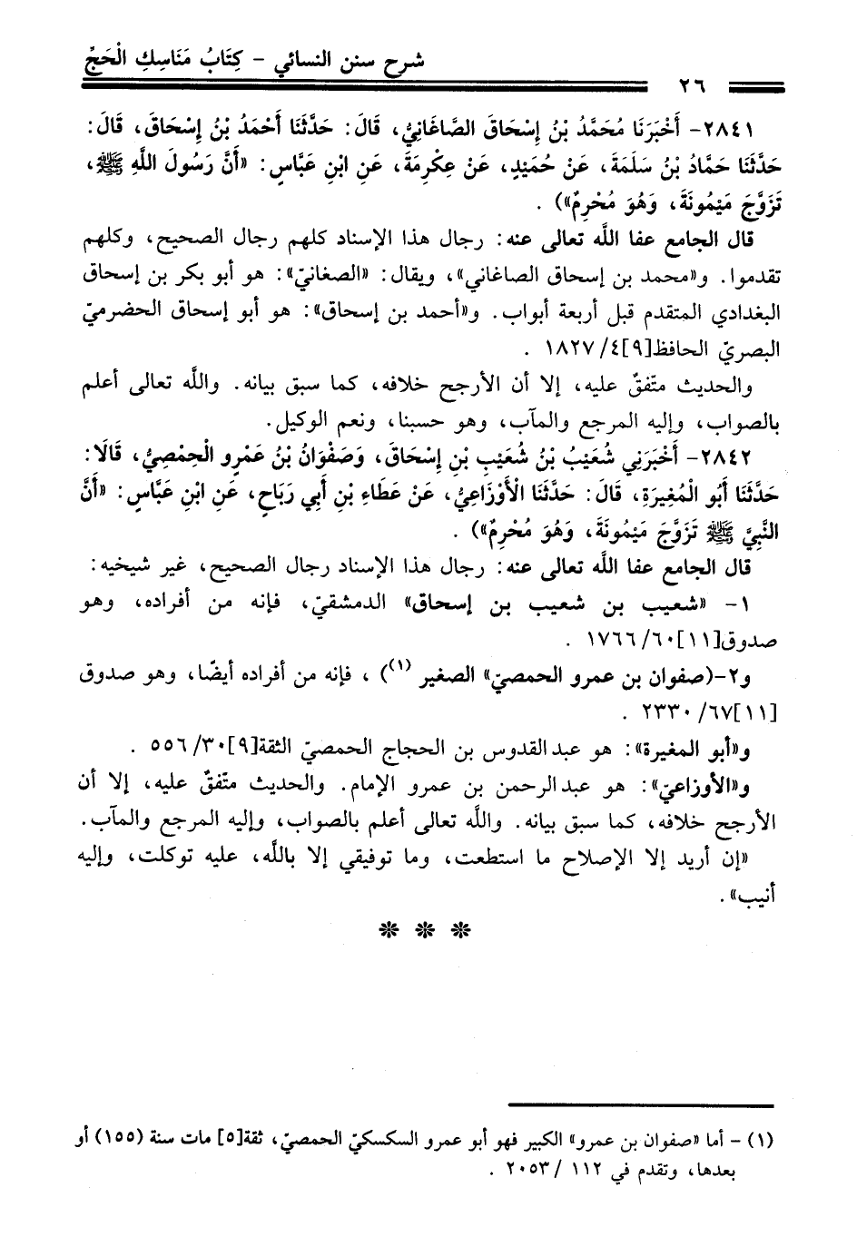 2842 - (أَخْبَرَنِي شُعَيْبُ بْنُ شُعَيْبِ بْنِ إِسْحَاقَ, وَصَفْوَانُ بْنُ عَمْرٍو الْحِمْصِيُّ, قَالاَ: حَدَّثَنَا أَبُو الْمُغِيرَةِ, قَالَ: حَدَّثَنَا الأَوْزَاعِيُّ, عَنْ عَطَاءِ بْنِ أَبِي رَبَاحٍ, عَنِ ابْنِ عَبَّاسٍ: "أَنَّ النَّبِيَّ - صلى اللَّه عليه وسلم - تَزَوَّجَ مَيْمُونَةَ, وَهُوَ مُحْرِمٌ").