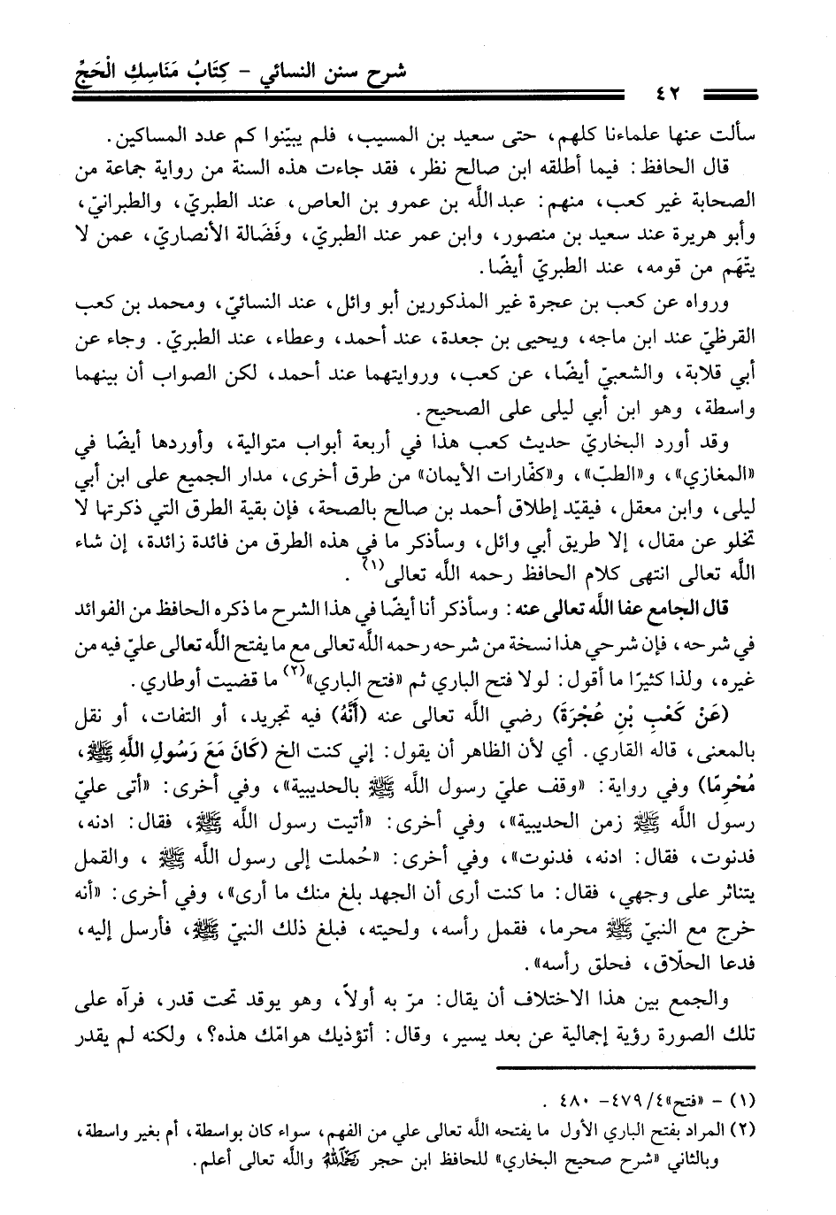 وقد أورد البخاريّ حديث كعب هذا في أربعة أبواب متوالية، وأوردها أيضًا في "المغازي"، و"الطبّ"، و"كفّارات الأيمان" من طرق أخرى، مدار الجميع على ابن أبي ليلى، وابن معقل، فيقيّد إطلاق أحمد بن صالح بالصحة، فإن بقية الطرف التي ذكرتها لا تخلو عن مقال، إلا طريق أبي وائل، وسأذكر ما في هذه الطرق من فائدة زائدة، إن شاء اللَّه تعالى انتهى كلام الحافظ -رحمه اللَّه تعالى- (¬1).
