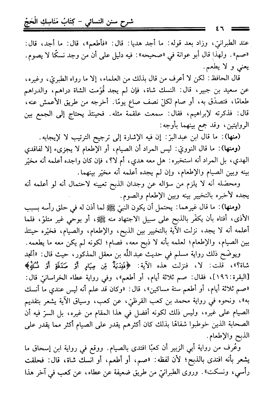ويوضّح ذلك رواية مسلم في حديث عبد اللَّه بن معقل المذكور، حيث قال: "أتجد شاة؟ "، قلت: لا، فنزلت هذه الآية: {فَفِدْيَةٌ مِنْ صِيَامٍ أَوْ صَدَقَةٍ أَوْ نُسُكٍ} [البقرة: 196]، فقال: صم ثلاثة أيام، أو أطعم"، وفي رواية عطاء الخراسانيّ قال: "صم ثلاثة أيام، أو أطعم ستة مساكين"، قال: "وكان قد علم أنه ليس عندي ما أنسك به"، ونحوه في رواية محمد بن كعب القرظيّ، عن كعب، وسياق الآية يشعر بتقديم الصيام على غيره، وليس ذلك لكونه أفضل في هذا المقام من غيره، بل السرّ فيه أن الصحابة الذين خوطبوا شفاهًا بذلك كان أكثرهم يقدر على الصيام أكثر مما يقدر على الذبح والإطعام.