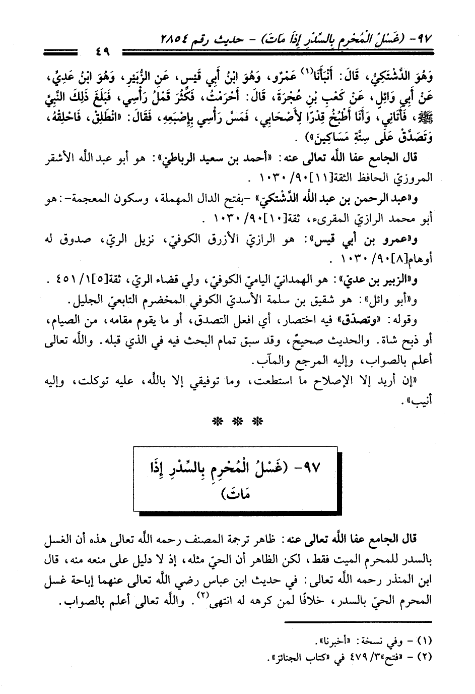 (¬2) - "فتح" 3/ 479 في "كتاب الجنائز".