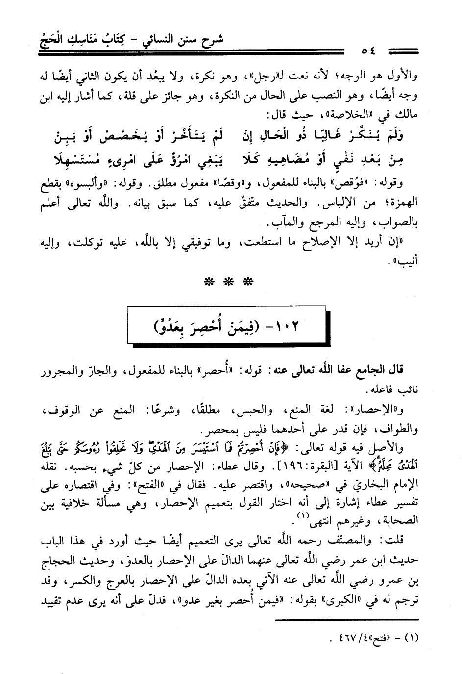 102 - (فِيمَنْ أُحْصِرَ بِعَدُوِّ)
