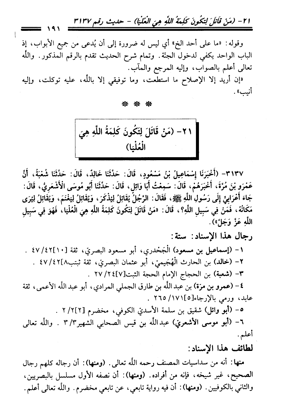21 - (مَنْ قَاتَلَ لِتَكُونَ كَلِمَةُ اللَّهِ هِيَ الْعُلْيَا)