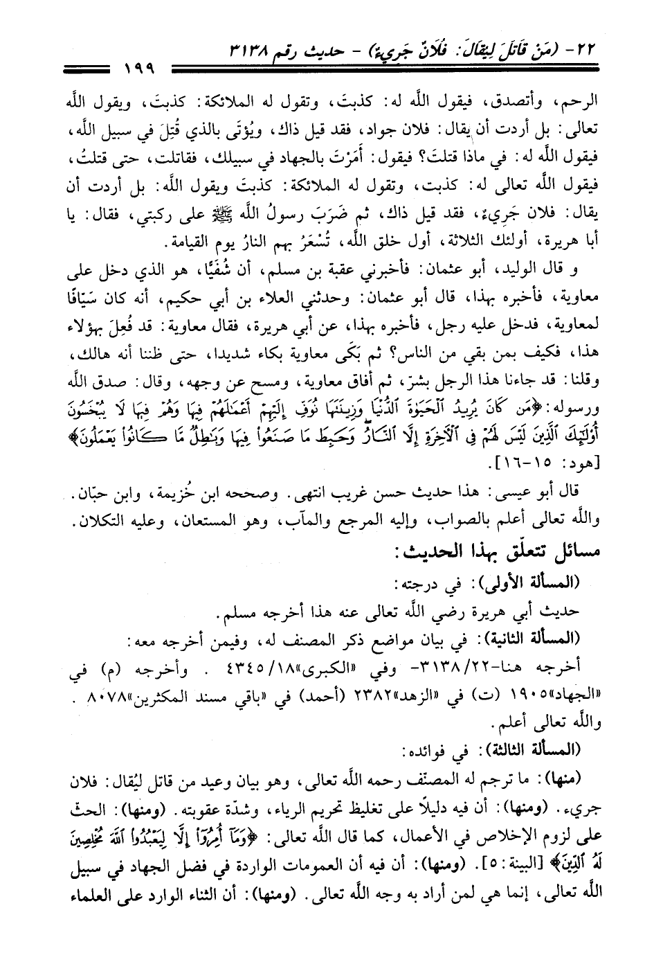 قال أبو عيسى: هذا حديث حسن غريب انتهى. وصححه ابن خُزيمة، وابن حبّان. واللَّه تعالى أعلم بالصواب، وإليه المرجع والمآب، وهو المستعان، وعليه التكلان.