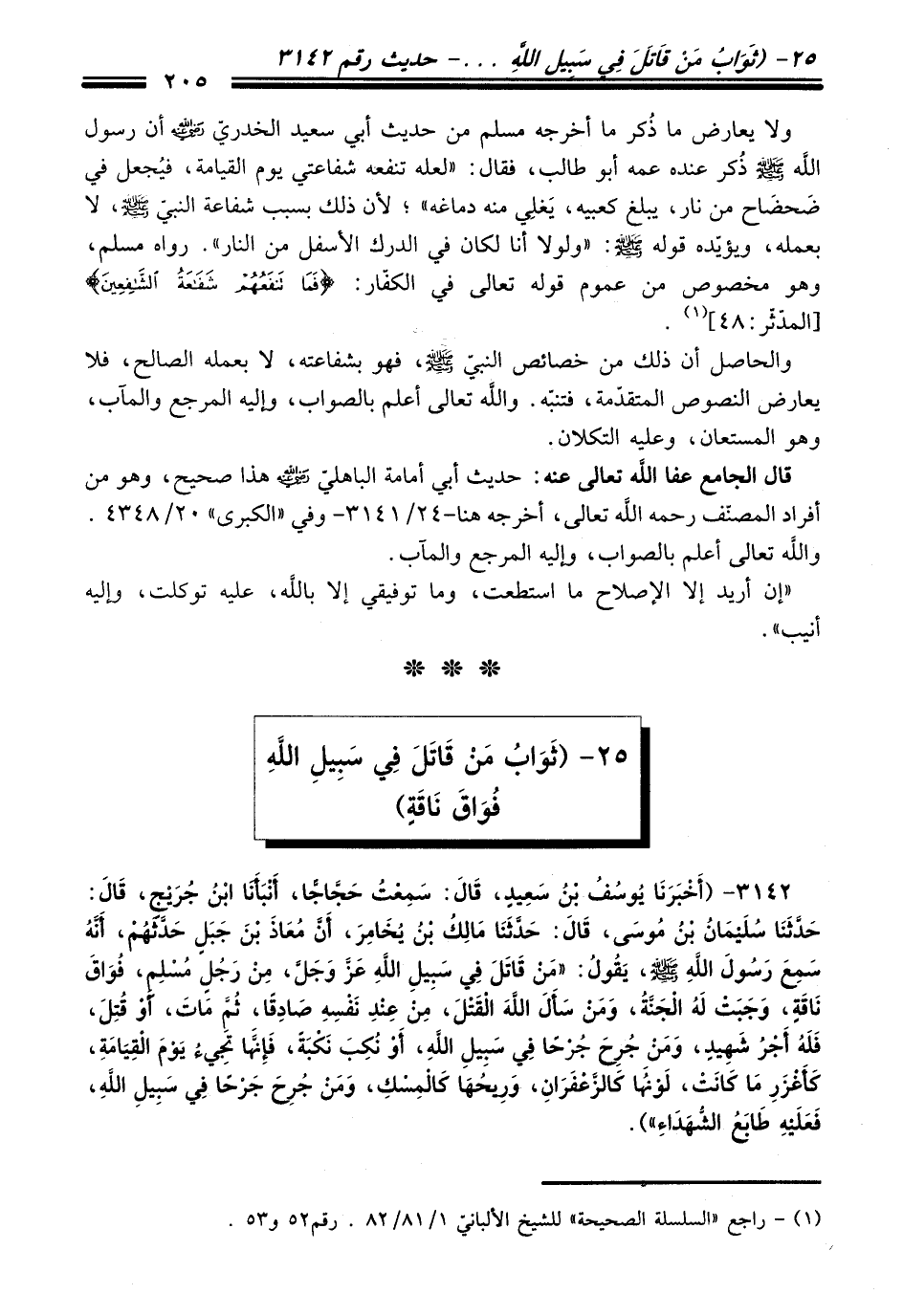 قال الجامع - عفا اللَّه تعالى عنه -: حديث أبي أمامة الباهليّ - رضي اللَّه عنه - هذا صحيح، وهو من أفراد المصنّف -رحمه اللَّه تعالى-، أخرجه هنا- 24/ 3141 - وفي "الكبرى" 20/ 4348. واللَّه تعالى أعلم بالصواب، وإليه المرجع والمآب.