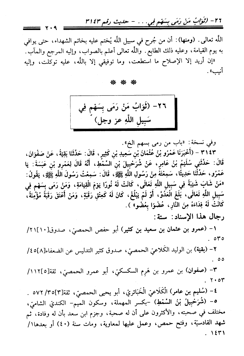 26 - (ثَوَابُ مَنْ رَمَى بِسَهْمٍ فِي سَبِيلِ اللهِ -عَزَّ وَجَلَّ-)