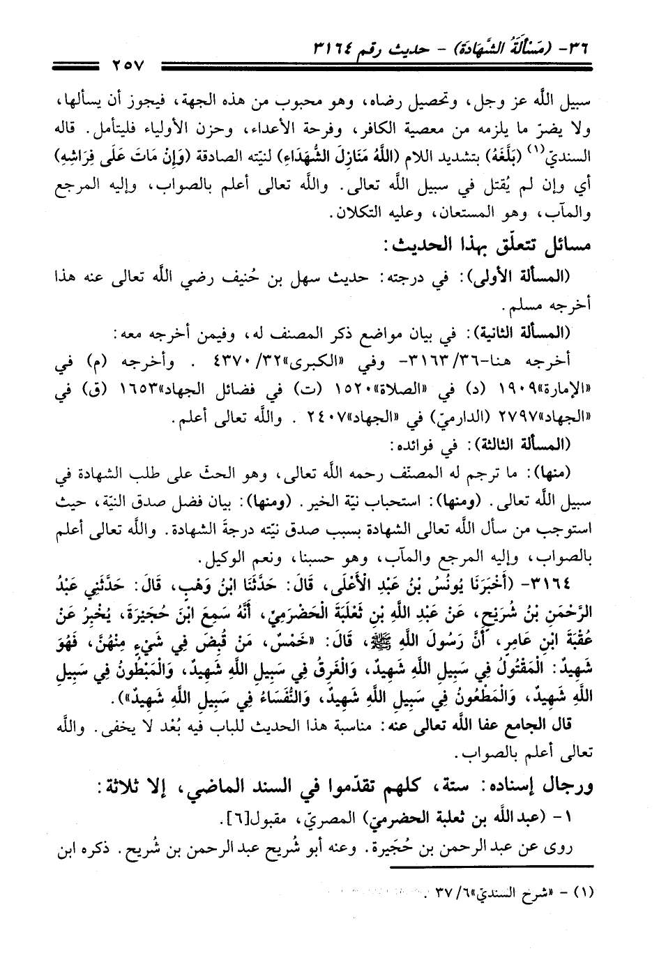 (المسألة الأولى): في درجته: حديث سهل بن حُنيف - رضي اللَّه تعالى عنه - هذا أخرجه مسلم.