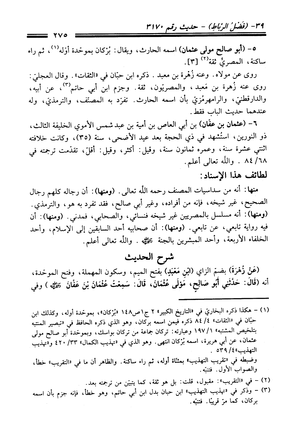 (¬1) - هكذا ذكره البخاريّ في "التاريخ الكبير" 2 ج1 ص 148 "بُرْكان"، بموحّدة أوله، وكذلك ابن حبّان في "الثقات" 4/ 84 ذكره فيمن اسمه بركان، وهو الذي ذكره الحافظ في "تبصير المنتبه بتلخيص المشتبه" 1/ 197 وعبارته: تركان جماعة من تركان بواسك، وبموحّدة أبو صالح مولى عثمان، عن أبي هريرة، اسمه بُرْكان انتهى. وهو الذي في "تهذيب الكمال" 33/ 420 و"تهذيب التهذيب" 4/ 539.