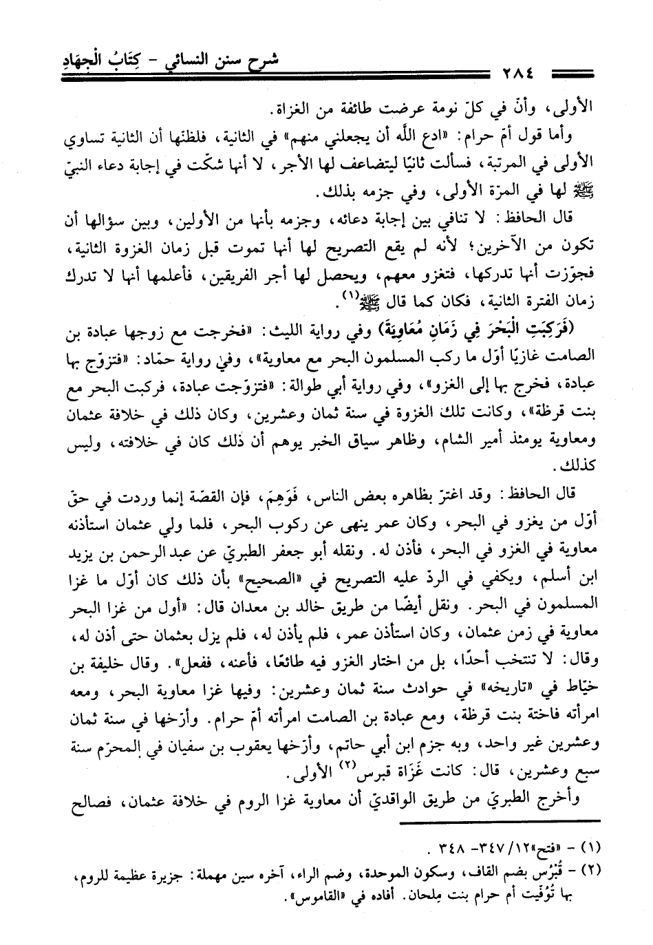 (¬2) - قُبْرُس بضم القاف، وسكون الموحدة، وضم الراء، آخره سين مهملة: جزيرة عظيمة للروم، بها تُوُفّيت أم حرام بنت ملحان. أفاده في "القاموس".