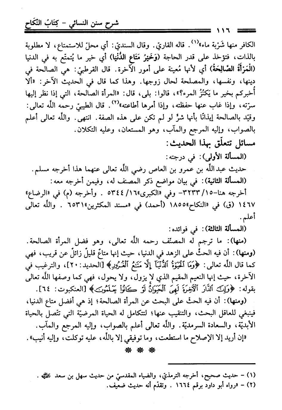 (منها): ما ترجم له المصنّف -رحمه اللَّه تعالى-، وهو فضل المرأة الصالحة.