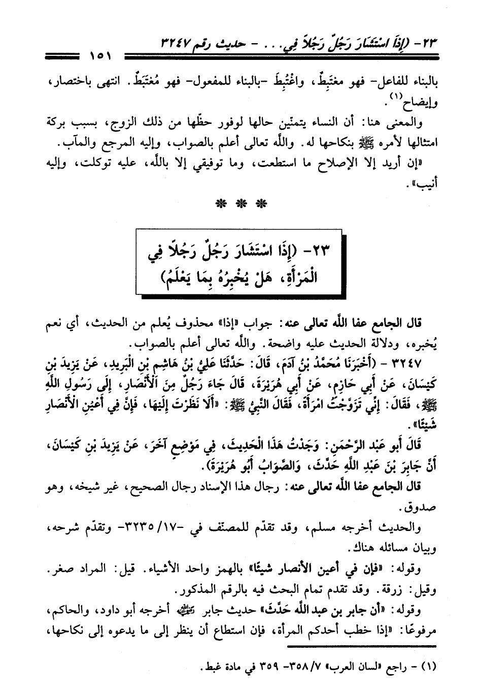23 - (إِذَا اسْتَشَارَ رَجُلٌ رَجُلاً فِي الْمَرْأَةِ، هَلْ يُخْبِرُهُ بِمَا يَعْلَمُ)