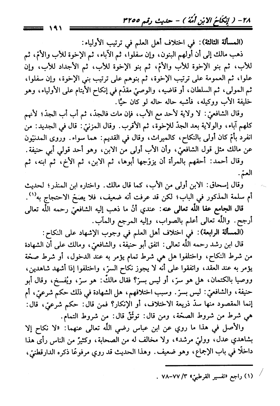 قال الجامع - عفا اللَّه تعالى عنه -: عندي أنّ ما ذهب إليه الشافعيّ -رحمه اللَّه تعالى- أرجح. واللَّه تعالى أعلم بالصواب، وإليه المرجع والمآب.
