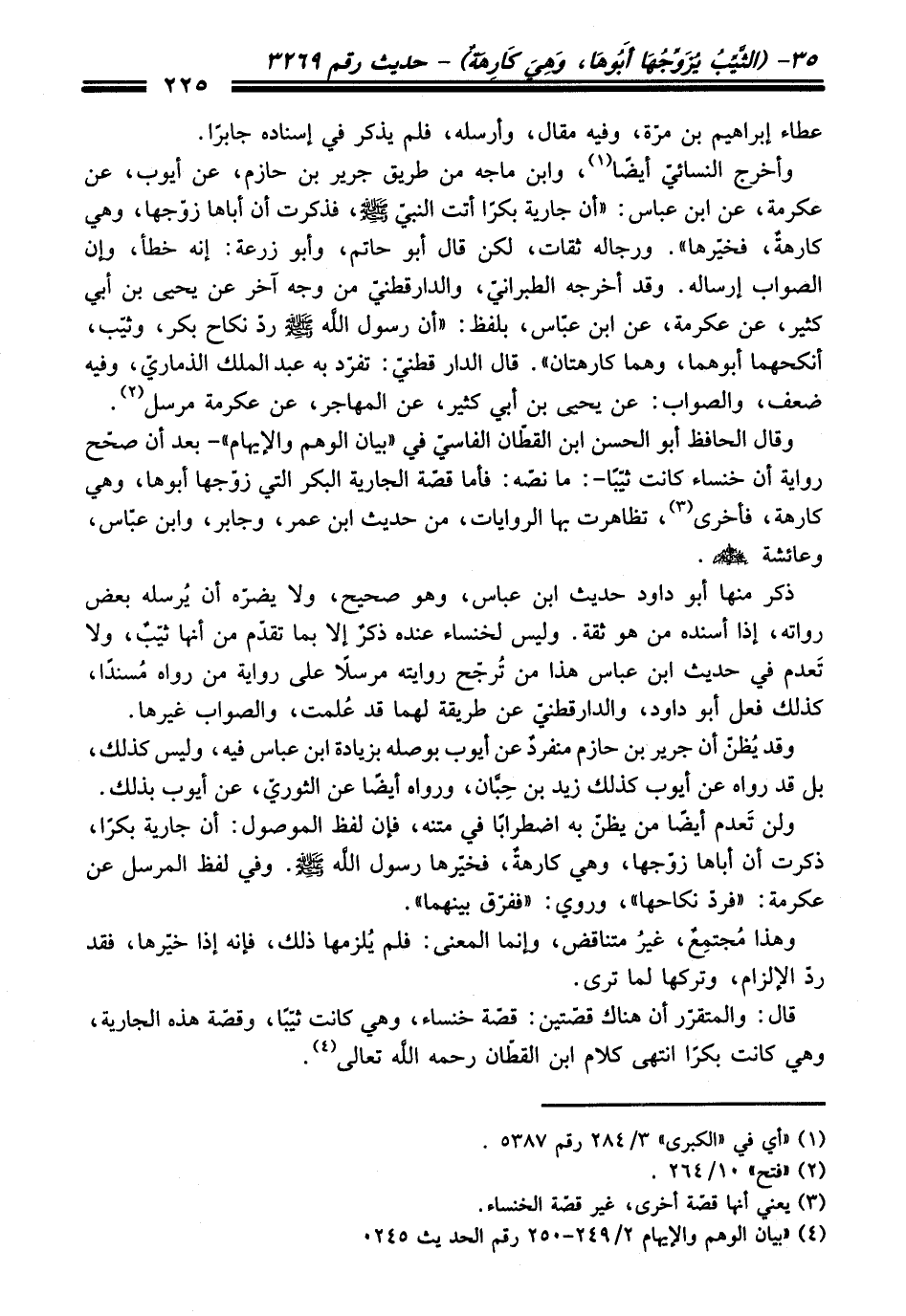 قال: والمتقرّر أن هناك قصّتين: قصّة خنساء، وهي كانت ثيّبًا، وقصّة هذه الجارية، وهي كانت بكرًا انتهى كلام ابن القطّان -رحمه اللَّه تعالى- (¬4).