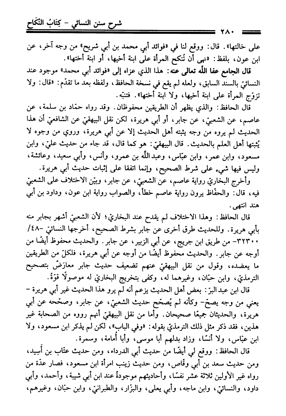 على خالتها". قال: ووقع لنا في "فوائد أبى محمد بن أبي شريح" من وجه آخر، عن ابن عون، بلفظ: "نهى أن تُنكح المرأة على ابنة أخيها، أو ابنة أختها".