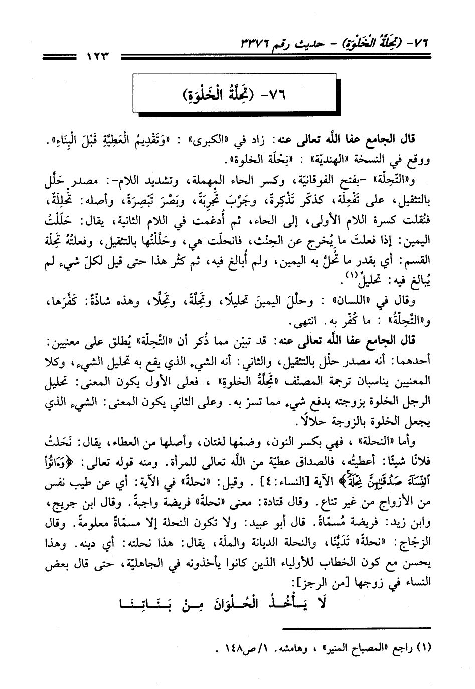 76 - (تَحِلَّةُ الْخَلْوَةِ)