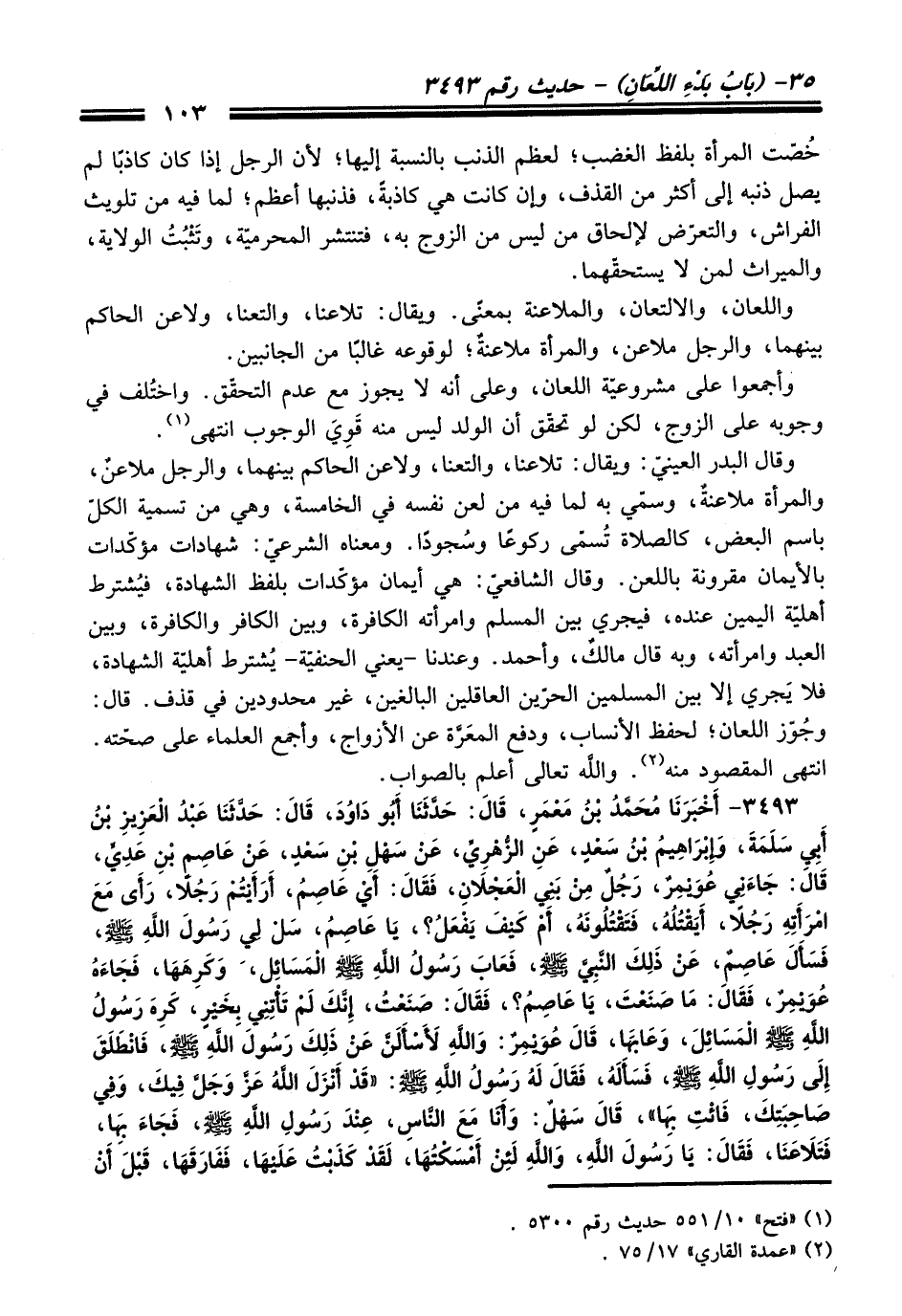 3493 - (أَخْبَرَنَا مُحَمَّدُ بْنُ مَعْمَرٍ, قَالَ: حَدَّثَنَا أَبُو دَاوُدَ, قَالَ: حَدَّثَنَا عَبْدُ الْعَزِيزِ بْنُ أَبِي سَلَمَةَ, وَإِبْرَاهِيمُ بْنُ سَعْدٍ, عَنِ الزُّهْرِيِّ, عَنْ سَهْلِ بْنِ سَعْدٍ, عَنْ عَاصِمِ بْنِ عَدِيٍّ, قَالَ: جَاءَنِي عُوَيْمِرٌ, رَجُلٌ مِنْ بَنِي الْعَجْلاَنِ, فَقَالَ: أَيْ عَاصِمُ, أَرَأَيْتُمْ رَجُلاً, رَأَى مَعَ امْرَأَتِهِ رَجُلاً, أَيَقْتُلُهُ, فَتَقْتُلُونَهُ, أَمْ كَيْفَ يَفْعَلُ؟ , يَا عَاصِمُ, سَلْ لِي رَسُولَ اللهِ - صلى اللَّه عليه وسلم -, فَسَأَلَ عَاصِمٌ, عَنْ ذَلِكَ النَّبِيَّ - صلى اللَّه عليه وسلم -, فَعَابَ رَسُولُ اللهِ - صلى اللَّه عليه وسلم - الْمَسَائِلَ, وَكَرِهَهَا, فَجَاءَهُ عُوَيْمِرٌ, فَقَالَ: مَا صَنَعْتَ يَا عَاصِمُ؟ , فَقَالَ: صَنَعْتُ, أَنَّكَ لَمْ تَأْتِنِي بِخَيْرٍ, كَرِهَ رَسُولُ اللهِ - صلى اللَّه عليه وسلم - الْمَسَائِلَ, وَعَابَهَا, قَالَ عُوَيْمِرٌ: وَاللَّهِ لأَسْأَلَنَّ عَنْ ذَلِكَ رَسُولَ اللهِ - صلى اللَّه عليه وسلم -, فَانْطَلَقَ إِلَى رَسُولِ اللهِ - صلى اللَّه عليه وسلم -, فَسَأَلَهُ, فَقَالَ لَهُ رَسُولُ اللهِ - صلى اللَّه عليه وسلم -: «قَدْ أَنْزَلَ اللَّهُ -عَزَّ وَجَلَّ- فِيكَ, وَفِي صَاحِبَتِكَ, فَائْتِ بِهَا» , قَالَ سَهْلٌ: وَأَنَا مَعَ النَّاسِ, عِنْدَ رَسُولِ اللهِ - صلى اللَّه عليه وسلم -, فَجَاءَ بِهَا, فَتَلاَعَنَا, فَقَالَ: يَا رَسُولَ اللهِ, وَاللَّهِ لَئِنْ أَمْسَكْتُهَا, لَقَدْ كَذَبْتُ عَلَيْهَا, فَفَارَقَهَا, قَبْلَ أَنْ