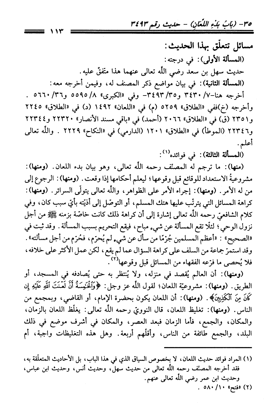 (¬1) المراد فوائد حديث اللعان، لا بخصوص السياق الذي في هذا الباب، بل الأحاديث المتعلّقة به، فقد أخرجه المصنّف -رحمه اللَّه تعالى- من حديث سهل، وحديث أنس، وحديث ابن عبّاس، وحديث ابن عمر - رضي اللَّه تعالى عنهم -.