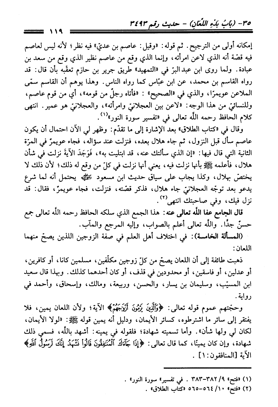 (¬1) "فتح" 9/ 382 - 383. في تفسير "سورة النور".