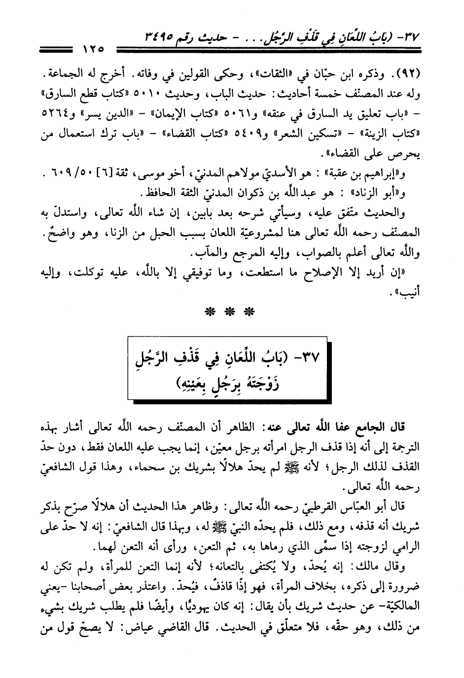 37 - (بَابُ اللِّعَانِ فِي قَذْفِ الرَّجُلِ زَوْجَتَهُ بِرَجُلٍ بِعَيْنِهِ)