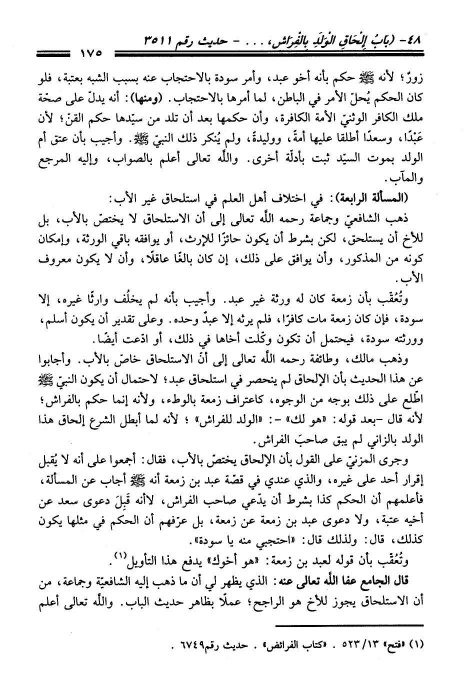 (¬1) "فتح" 13/ 523. "كتاب الفرائض". حديث رقم 6749.