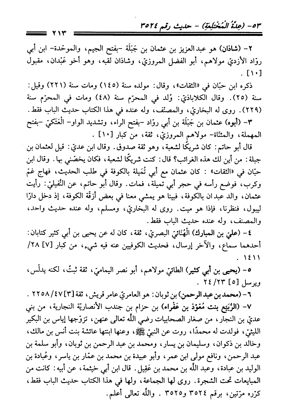 2 - (شاذان) هو عبد العزيز بن عثمان بن جَبَلَة -بفتح الجيم، والموحّدة- ابن أبي روّاد الأزديّ مولاهم، أبو الفضل المروزيّ، وشاذان لقبه، وهو أخو عَبْدان، مقبول [10].